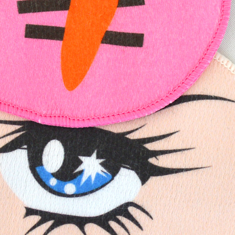 アイマスク面とゴムはどなたでも使用していただけるようフリーサイズにしています。頭をとめるゴム素材も締め付け感がないよう伸縮性のある素材、ゴム幅となっています。